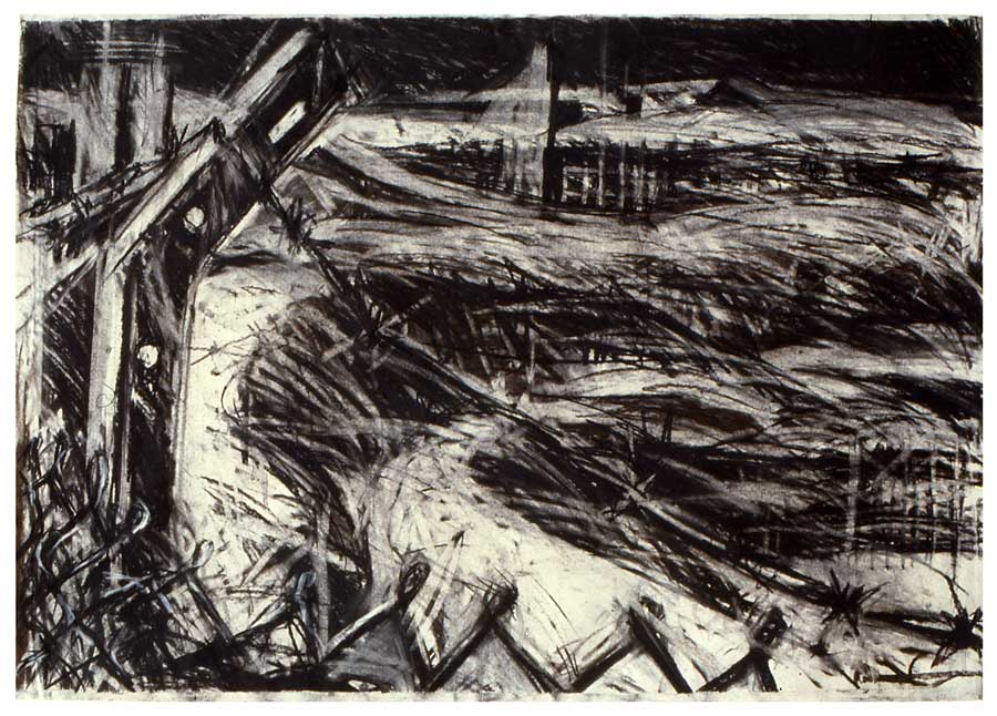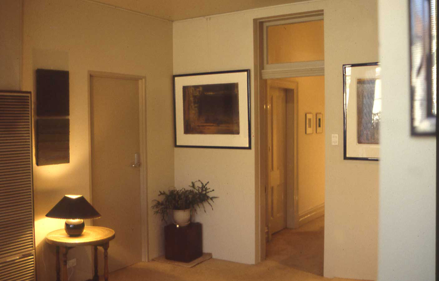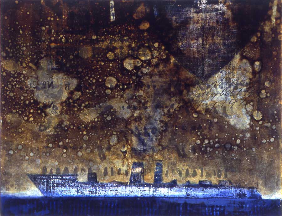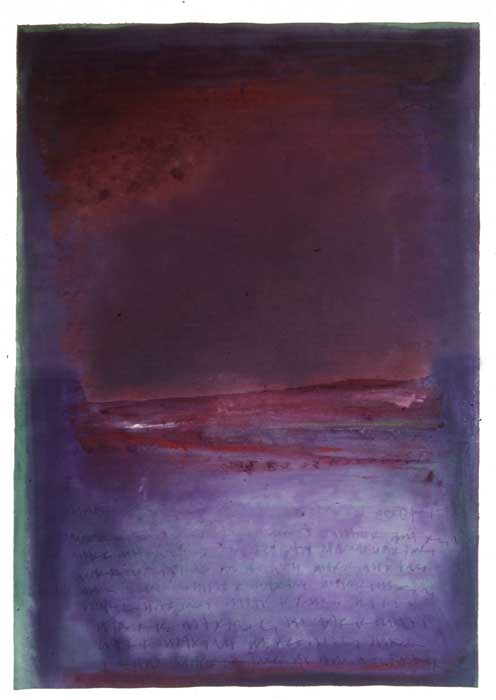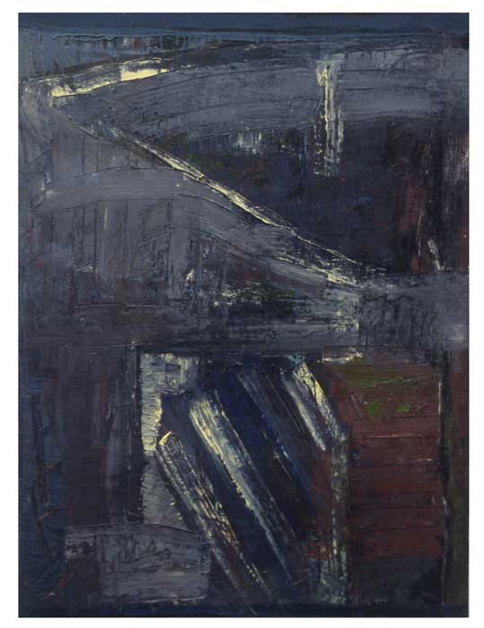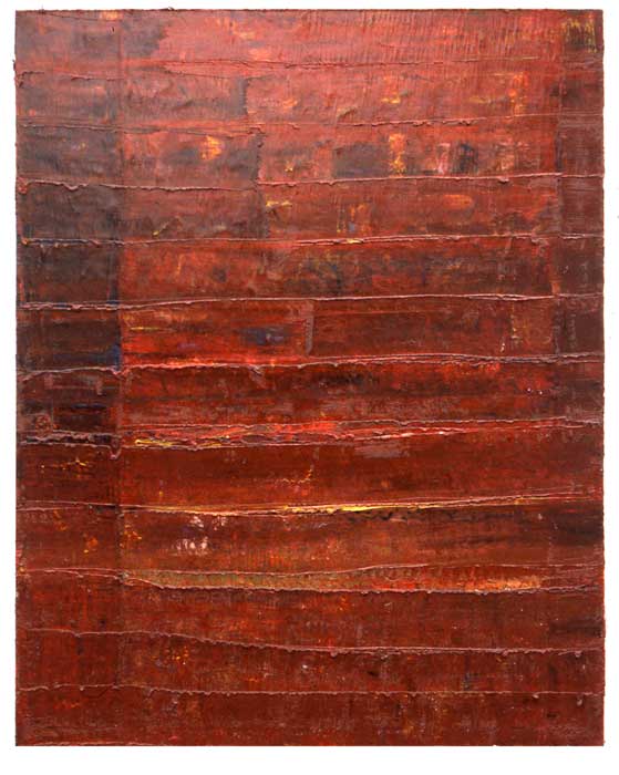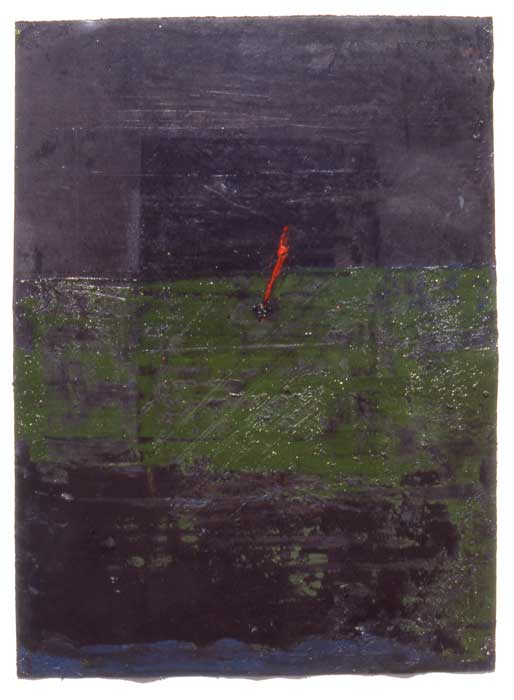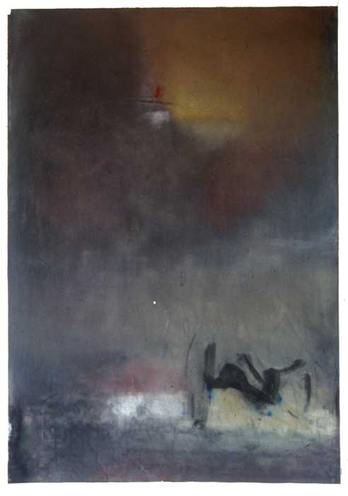 My working process is one of intuitively working the layers of colour, scratching and re-working the surface, allowing the buried shapes to surface again. By moving through this physical process a point is reached where the image formed correlates strongly with my own cultural and personal points of reference, which I believe translate universally. To simply remain the detached observer who selects a part of a weathered wall, is not enough, For me there is a need to be a full participation of the working process, and to certain extent direct those marks that are relevant to a personal imagery.